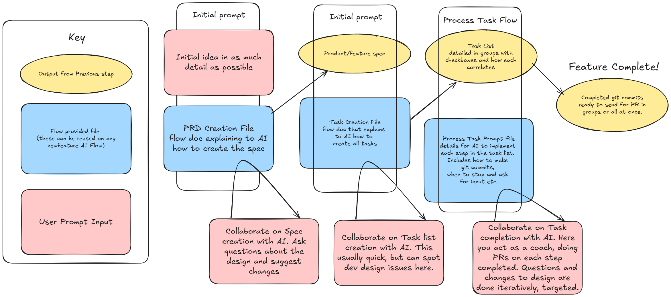- From the start the feature is well documented by the collaboration of the Users AI and the AI generating a Dev Spec (PRD).